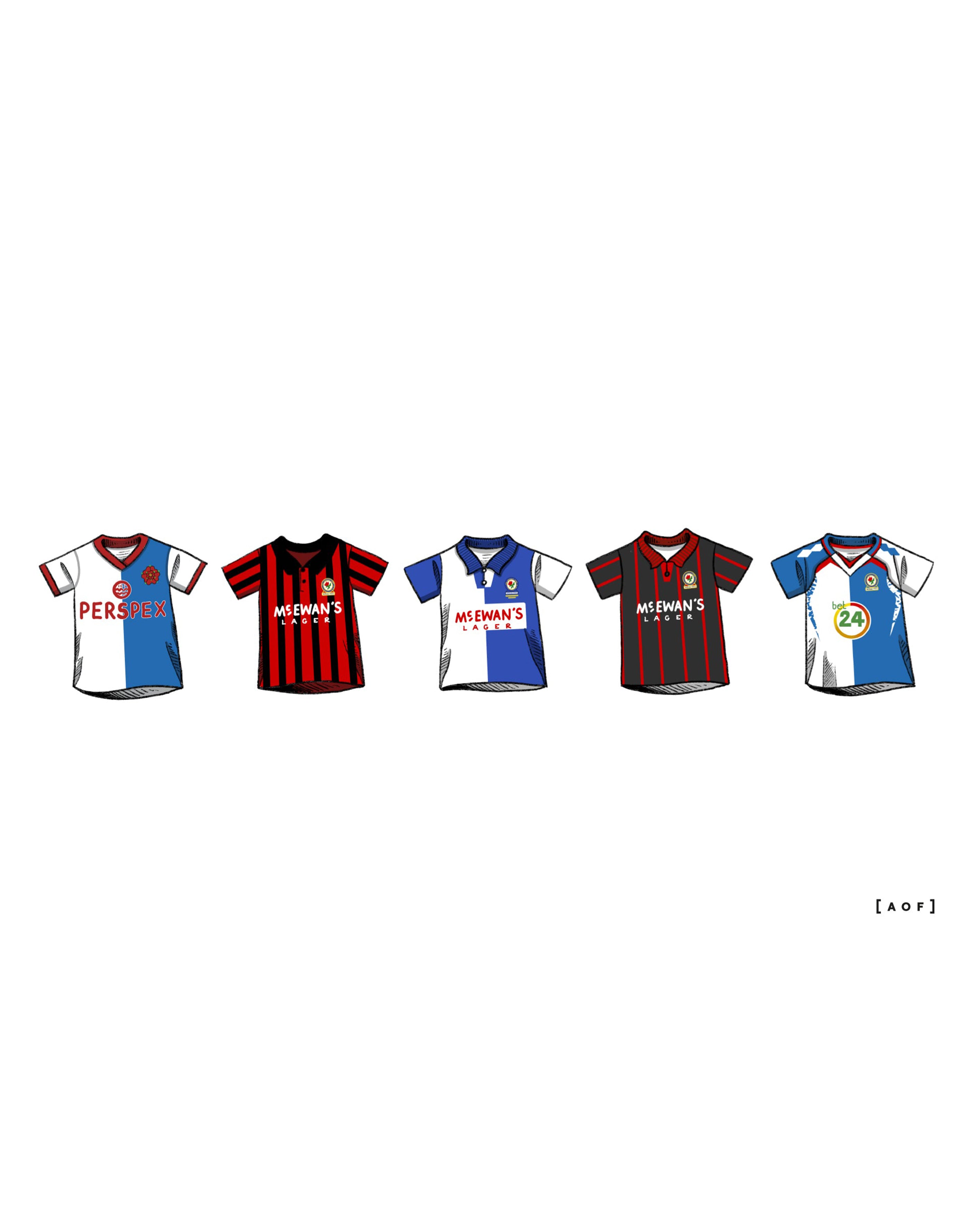 • Design: A collection of classic Blackburn football shirts as requested by Rovers fans.