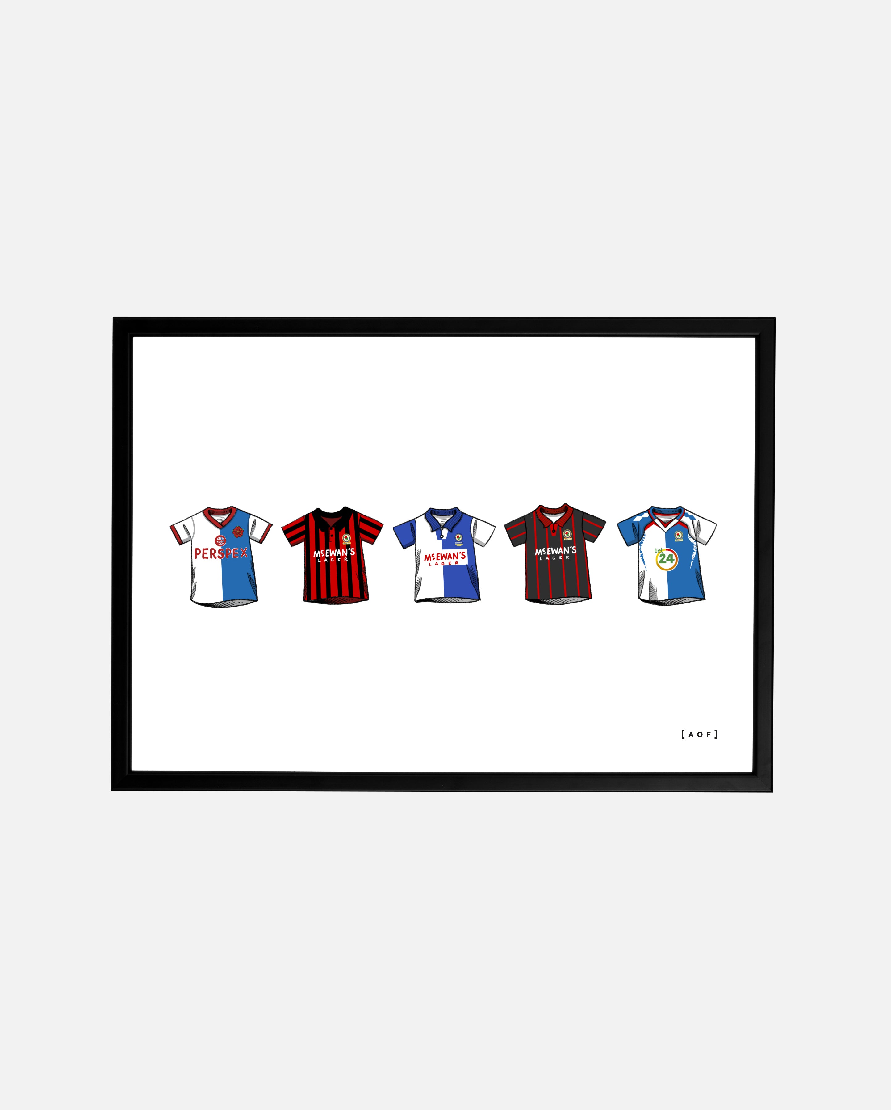 • Design: A collection of classic Blackburn football shirts as requested by Rovers fans.