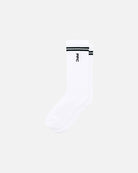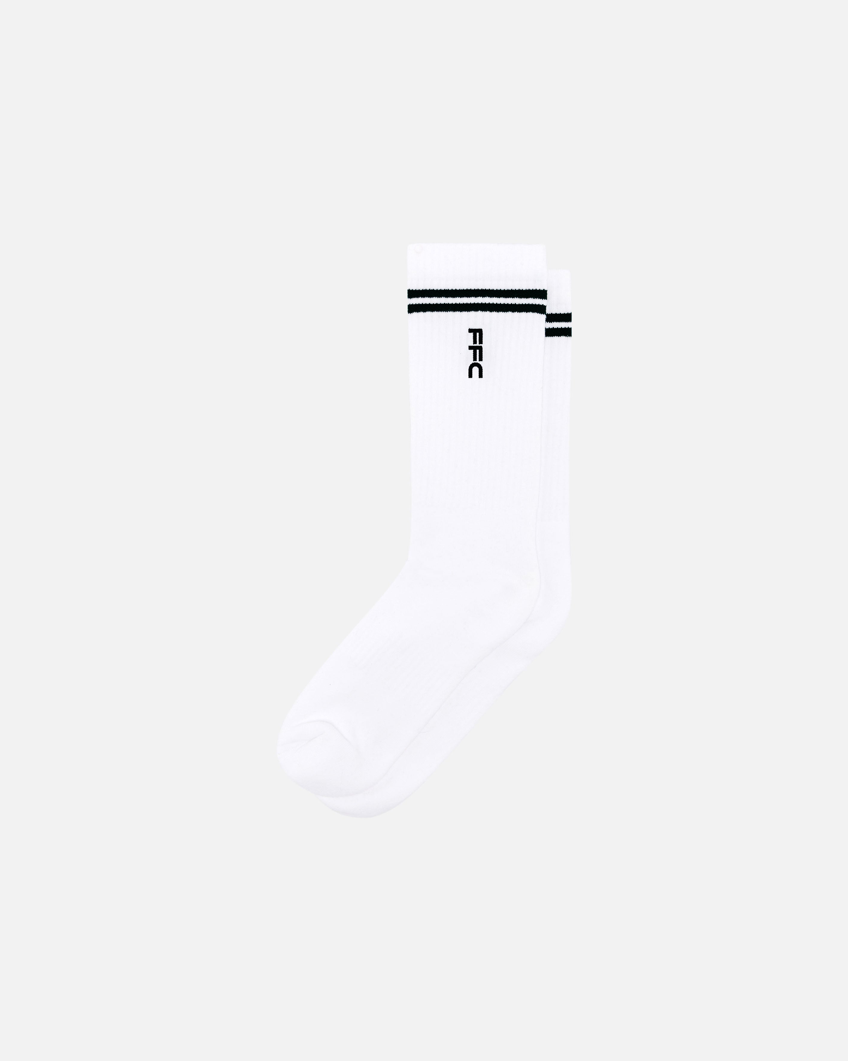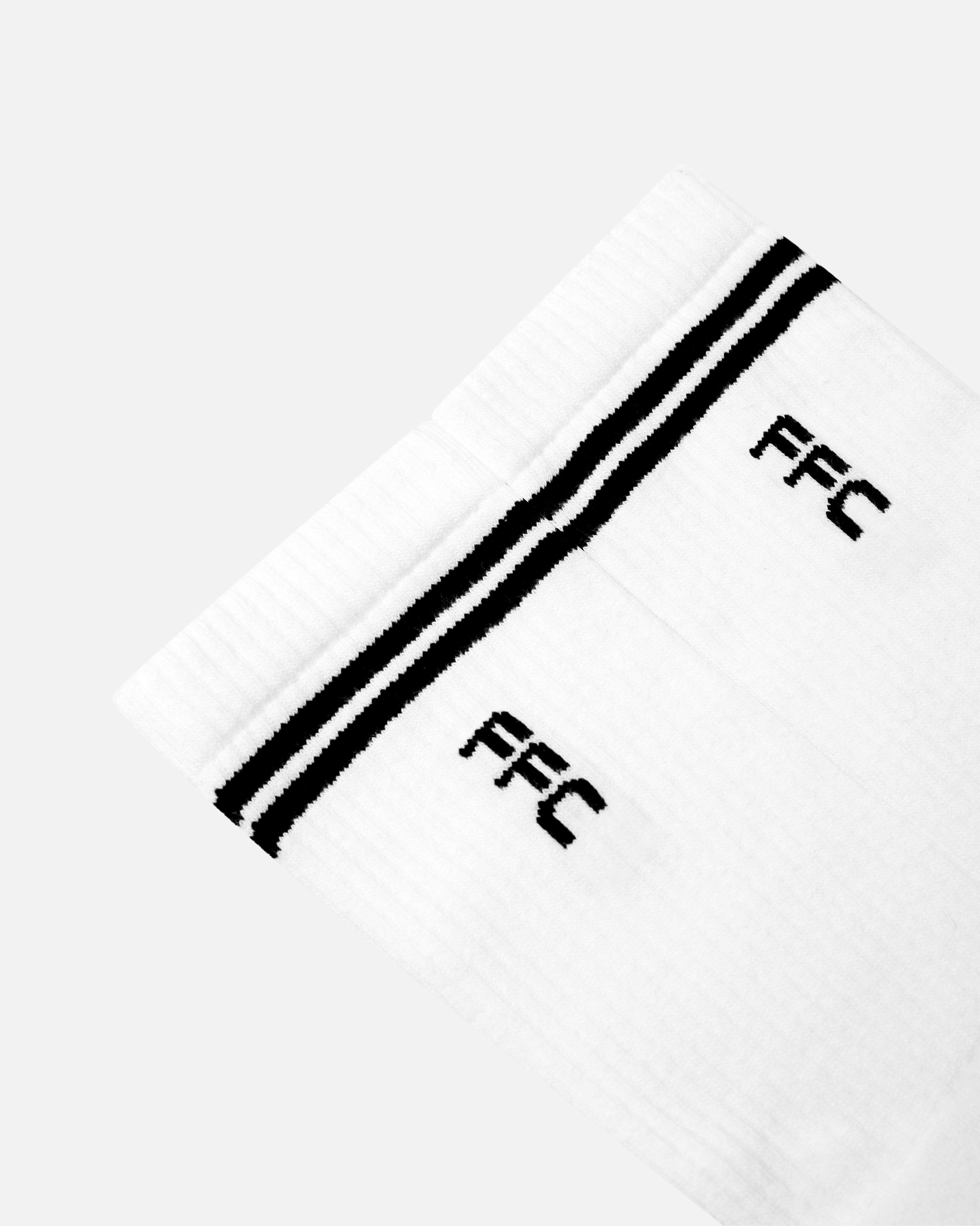 - White cotton blend ribbed socks.